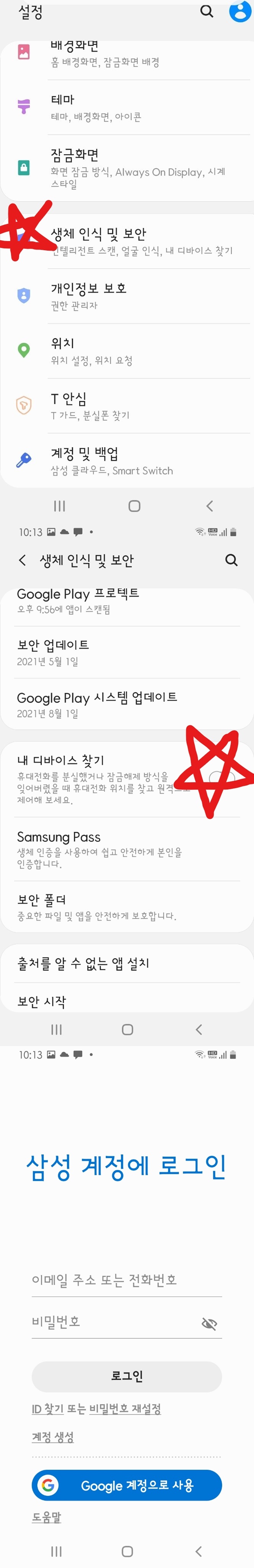 먼저 삼성스마트폰인 경우에는 평소에 설정에서 생체 인식 및 보안 메뉴로 들어가서 내 디바이스 찾기를 활성화하시고 삼성 계정에 로그인을 해 둡니다.