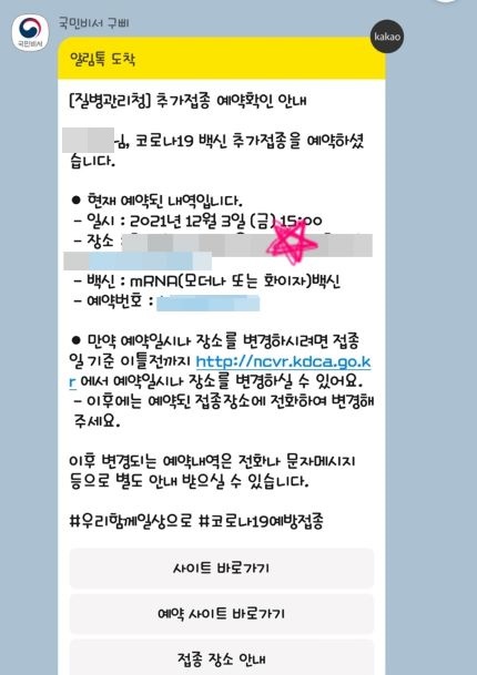 그런데, 부스터 샷(추가 접종) 접종 하루 전날 안내 문자가 왔는데, '모더나' 백신이라고 기재되어있었다.