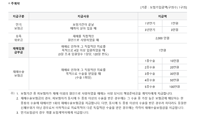 - 보험 형태 : 1년 만기 / 3년 만기