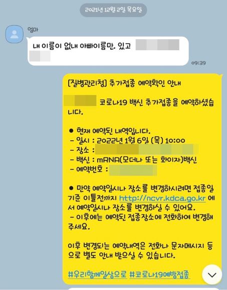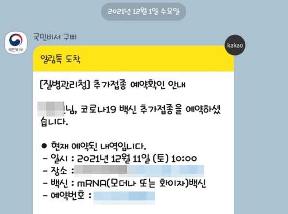 11월말쯤 문자를 받았습니다. 바로 부모님의 부스터 샷(3차 접종)에 대한 안내 문자였습니다. 안내문자에 따라 내년 1월달에 예약하기로 했습니다. 코로나 백신 1차 예약도 부모님 대신 제가 대리예약해서 3차접종도 해 드렸습니다.