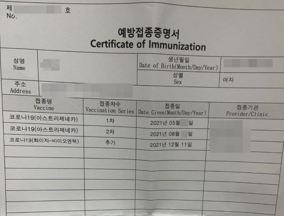 아무튼 어렵게 접종하고 3차접종(부스터 샷)까지 했지만, 더 이상 추가 접종은 안했으면 좋겠다. 빨리 코로나 종식이 오고 증명서 없이 일상생활이 가능한 날이 왔으면 좋겠다.