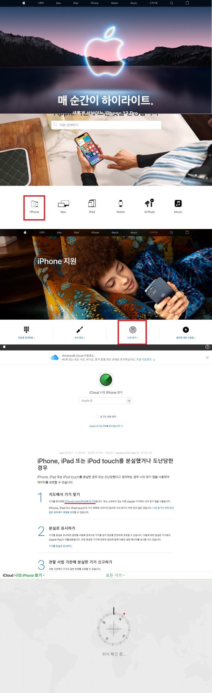 애플 홈페이지에서 고객지원 → 아이폰 → 나의찾기 → 기기찾기로 들어가시면 지도에서 기기 찾기, 분실로 표시하기 같이 구글이나 삼성처럼 폰을 잃어버렸을 때 조치할 수 있는 방법들이 나옵니다.